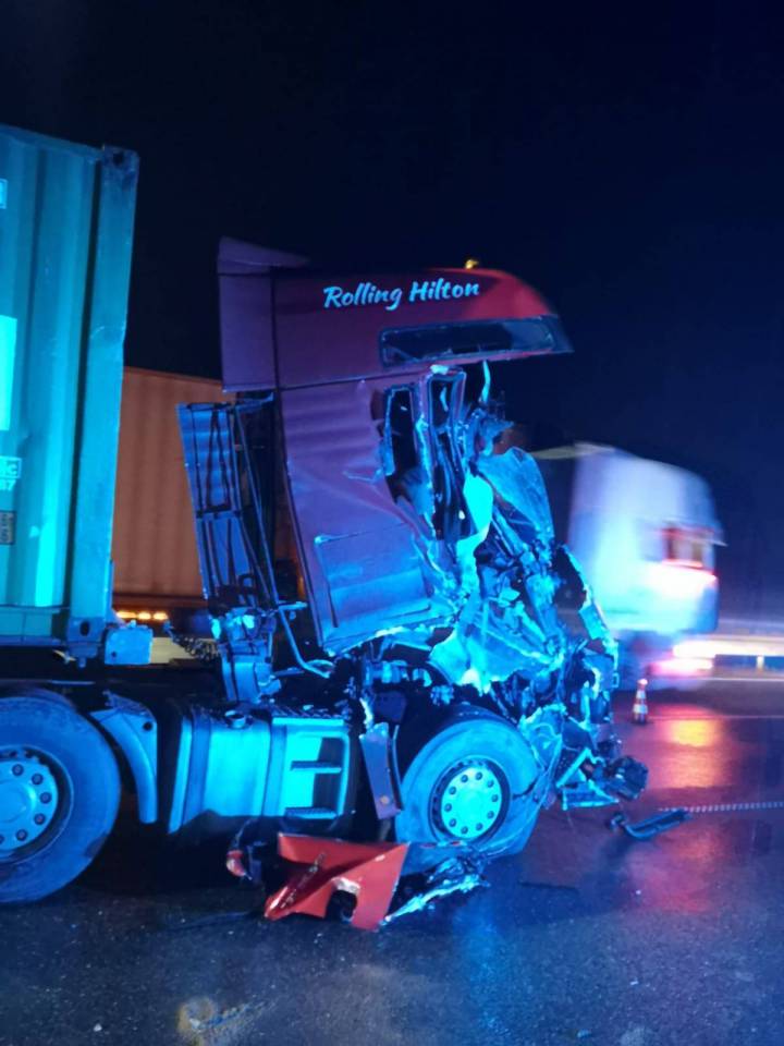 A1: Tir wjechał w wóz OSP. Druhowie wracali z akcji, sami zostali poszkodowani [Foto]