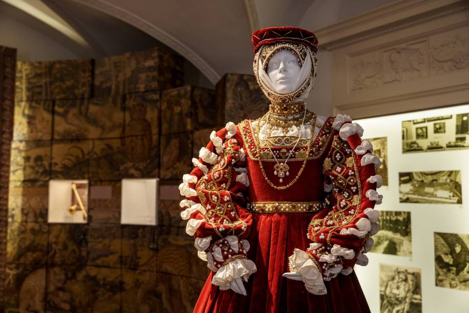 W historycznych wnętrzach pałacu lśnią repliki królewskich sukni, odtworzonych z niezwykłą dbałością o szczegóły. Jedna z nich powstaje przez trzy lata – ręcznie tkana i szyta, jak średniowieczny gobelin. To właśnie ta suknia staje się początkiem całej opowieści o królowej Barbarze.