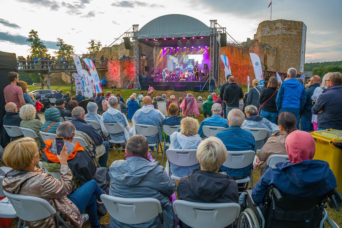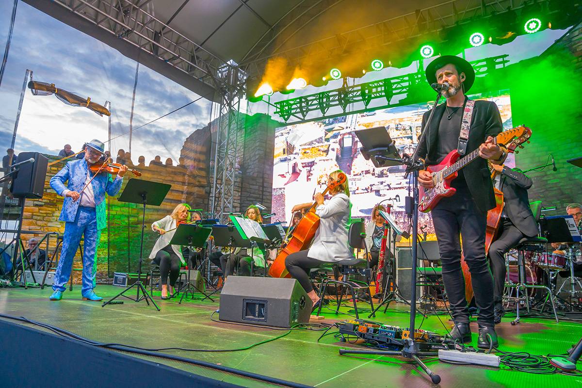 Na scenie plenerowej przed Zamkiem Kazimierzowskim w Inowłodzu wybrzmiały największe przeboje dużego ekranu i melodie ludowe z regionu łódzkiego w wykonaniu złożonej z muzyków Orkiestry Symfonicznej Filharmonii Łódzkiej Grohman Orchestra, która w tym roku obchodzi jubileusz 10-lecia istnienia.