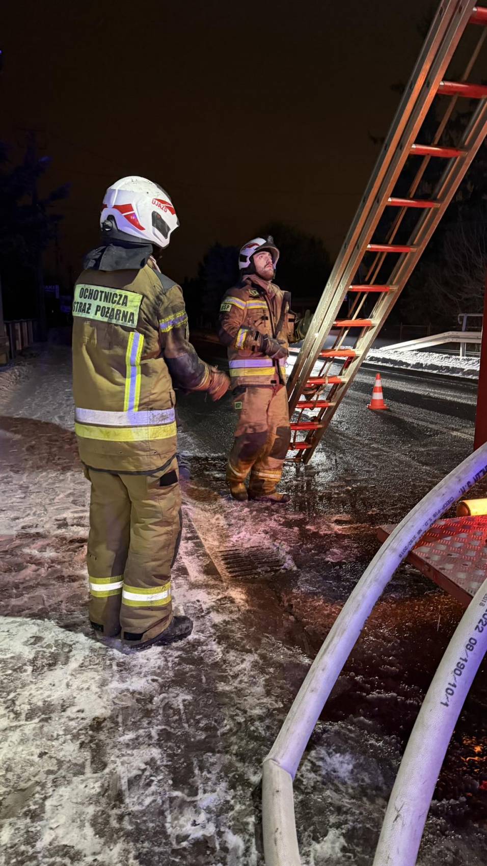 Dramatyczne chwile rozegrały się nad ranem 24 stycznia w Ujeździe w powiecie tomaszowskim. Około godziny 4:00 wybuchł pożar domu jednorodzinnego. Mieszkańcy zdołali ewakuować się jeszcze przed przyjazdem strażaków, jednak w płonącym budynku pozostały ich zwierzęta. Dzięki determinacji druhów udało się je wynieść.