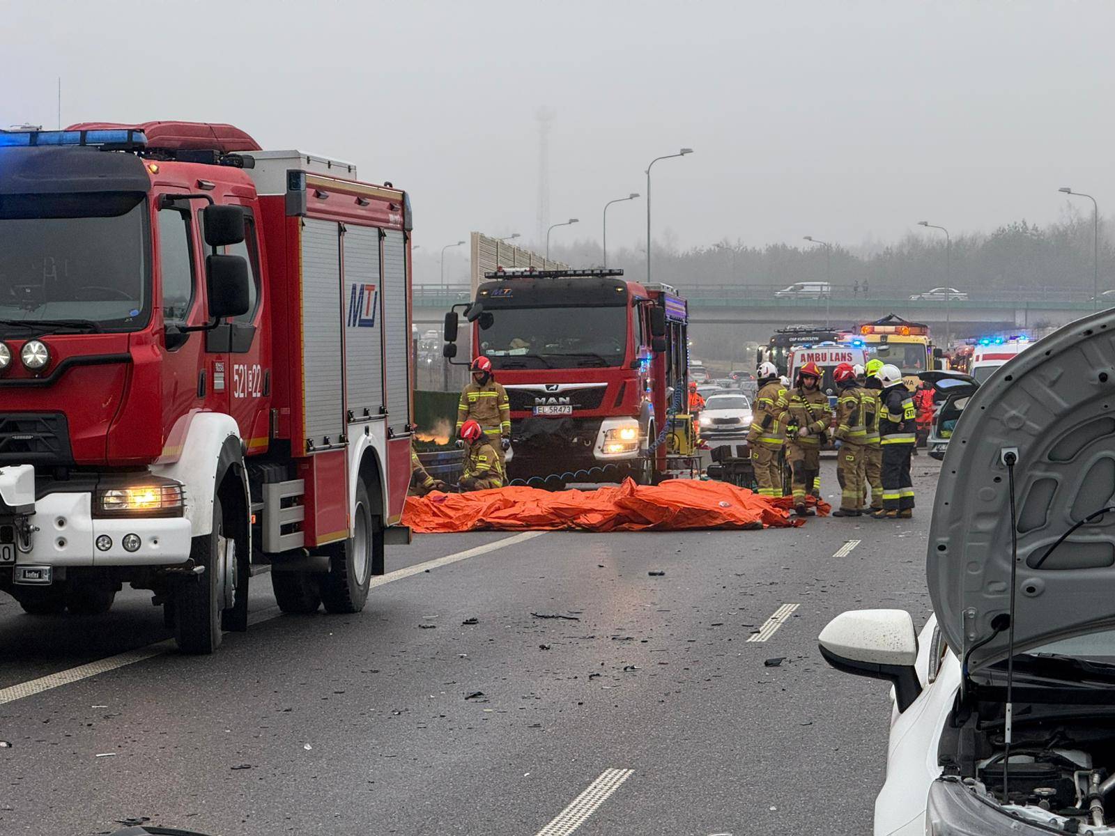 - Nic nie zapowiadało, że do wypadku dołączy również zespół ratownictwa medycznego, który dojeżdżając do miejsca zdarzenia, uderzył w jeden z rozbitych pojazdów. Na szczęście załodze karetki nic się nie stało – relacjonował brygadier Jędrzej Pawlak z Komendy Wojewódzkiej Państwowej Straży Pożarnej w Łodzi.