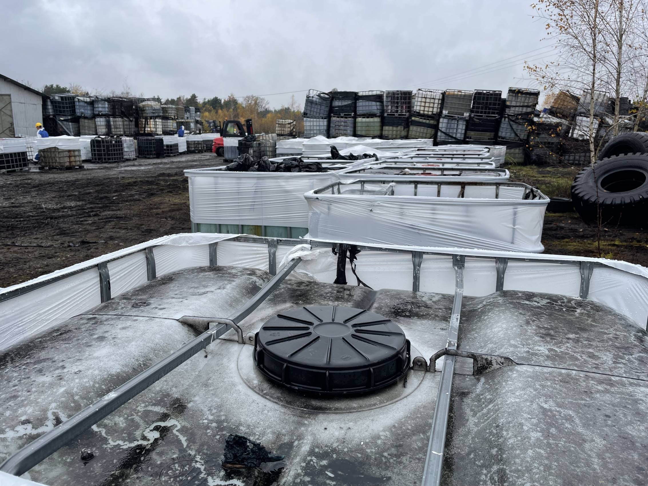 W Chabielicach rozpoczął się kolejny, kluczowy etap prac związanych z usuwaniem niebezpiecznych odpadów. W poniedziałek, 3 listopada, ze składowiska odjechało już kilka transportów z mauzerami zawierającymi substancje niebezpieczne – w momencie naszej obecności był to trzeci konwój. To początek intensywnej akcji, która ma doprowadzić do całkowitego oczyszczenia terenu.